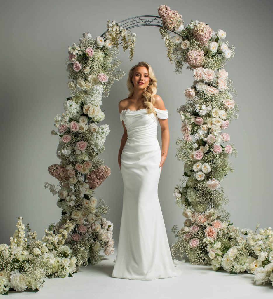 Our dresses are typically priced from ยฃ695 – ยฃ1495 to order in, and ยฃ445 – ยฃ1245 off-the-peg.